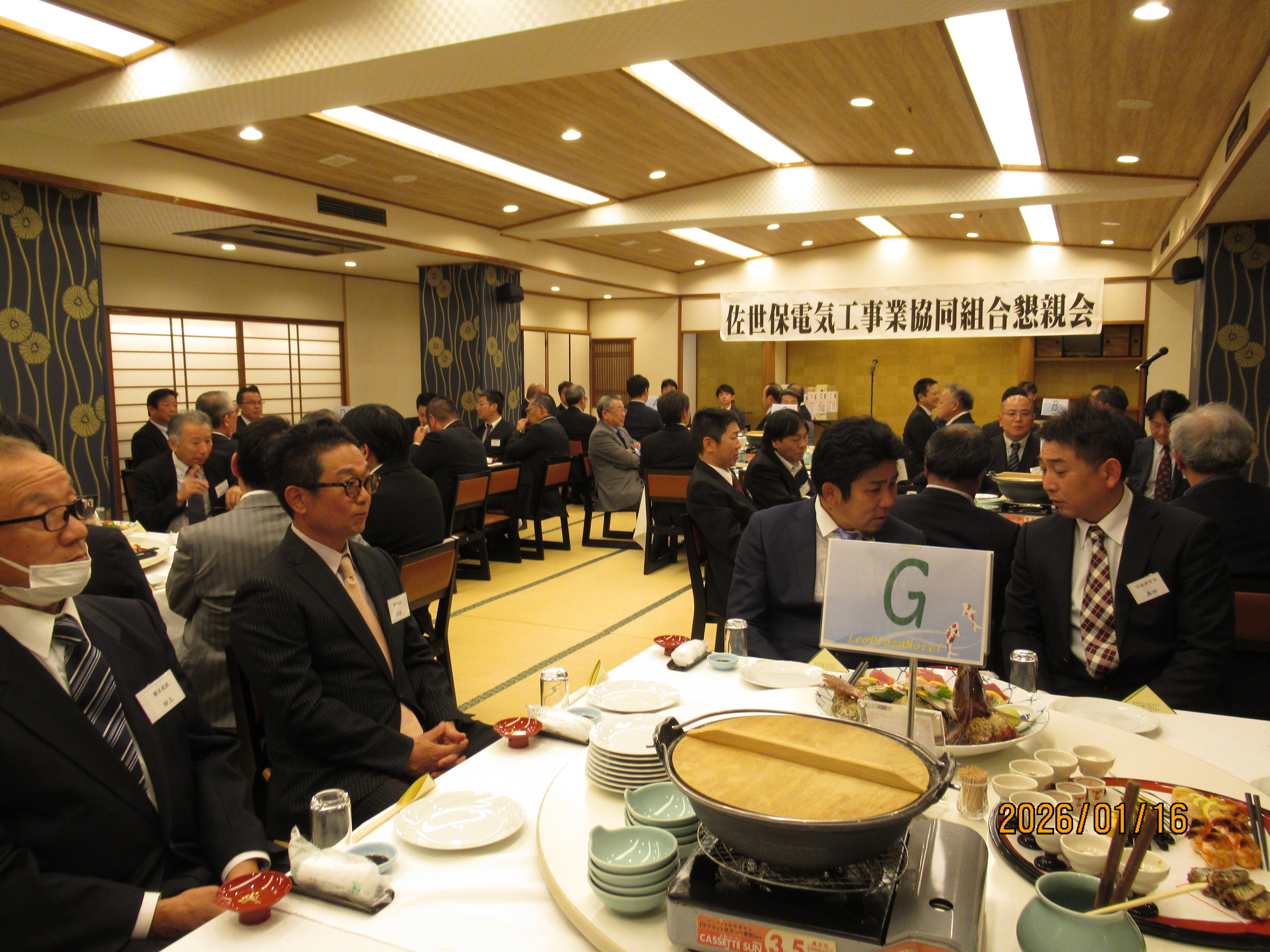 令和8年 新年懇親会開催のご報告 2026年1月20日 令和8年1月16日(金)18:30よりレオプラザホテル佐世保において新年懇親会を開催いたしました。 副市長様はじめ多くのご来賓の方々や組合員の皆様、お忙しい中ご出席いただき、ありがとうございました。 ※詳しくは、建設新聞にも掲載されております。