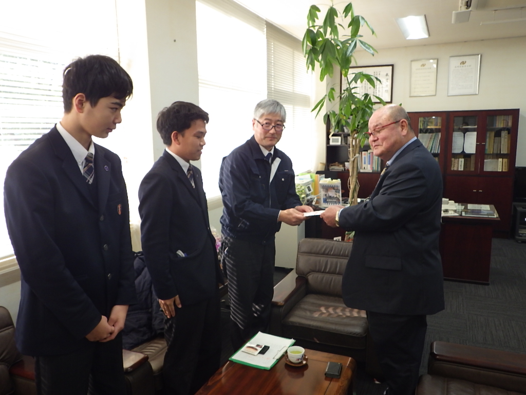 ならびに同協同組合青年部 大浦部長が出席し、各校の代表者へ目録を手渡しました。